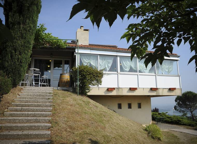 Cuisine traditionnelle et locale. Superbe vue le Rhône, les Alpes et le Vercors. Salle climatisée. Réservation conseillée.