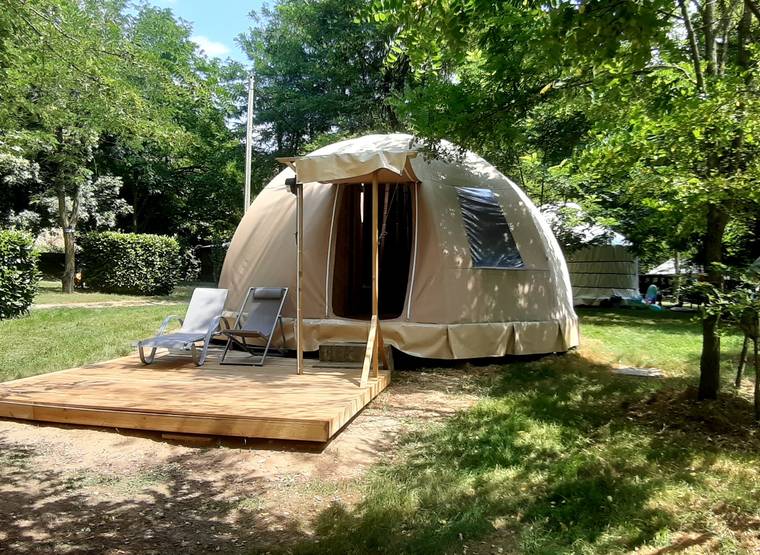 Venez tester aussi le Dôme Wigwam, une bulle ronde en toile avec ossature bois, conçue pour 4 personnes, avec salle de bain.