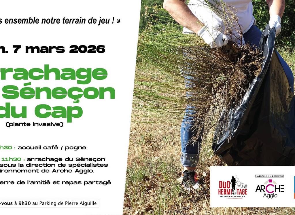 9h30-> 11h30 : arrachage du Seneçon du Cap avec l'aide des spécialistes environnement de Arche Agglo