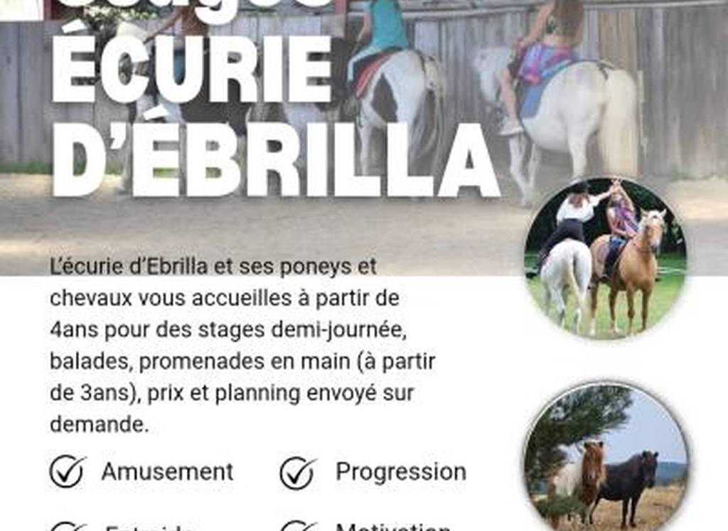 L'écurie d'Ebrilla propose des stages demi-journée , des balades et des promenades en main pour les enfants.