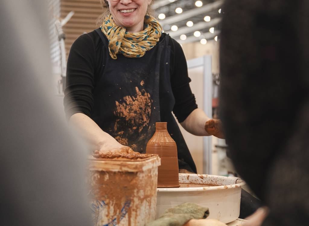 Toutes ses pièces sont fabriquées à la main sur un tour de potier et cuites dans un four électrique à 1000°C.