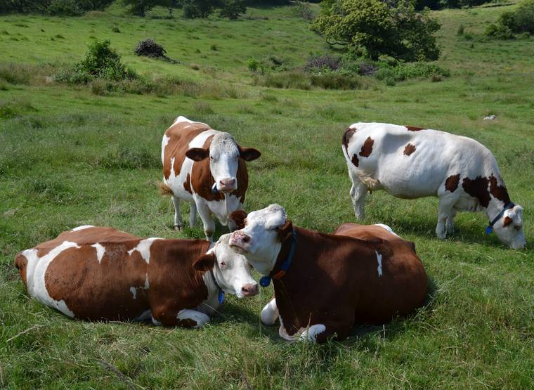 Elevage de 65 laitières de race Montbéliard, système tout herbe, traite robotisée.