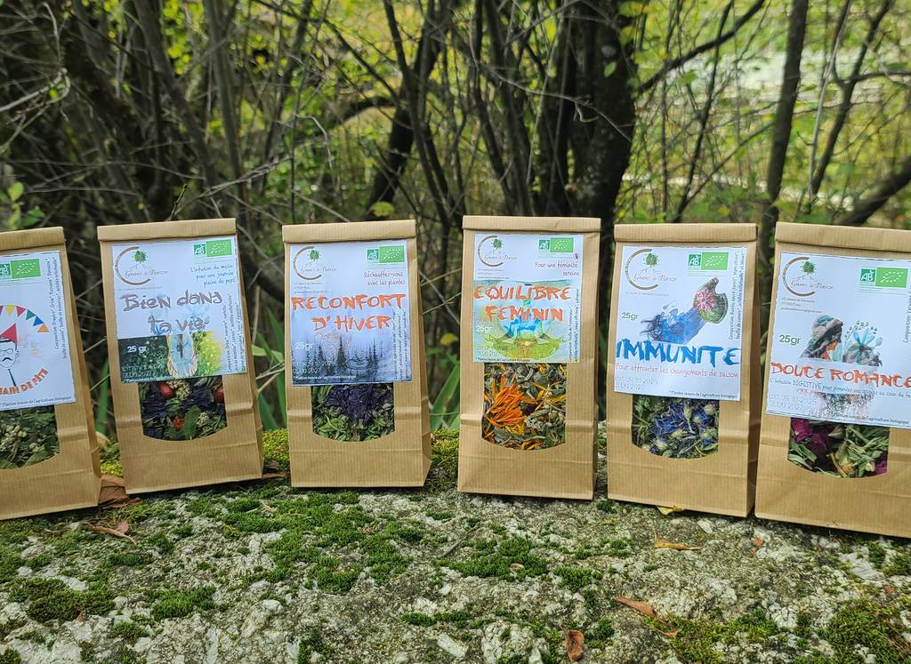 Nous proposons toutes une gamme de recette paysanne (aromates, infusion, condiments, confitures...). De quoi offrir ou s'offrir de beaux souvenirs de vos vacances en Ardèche!