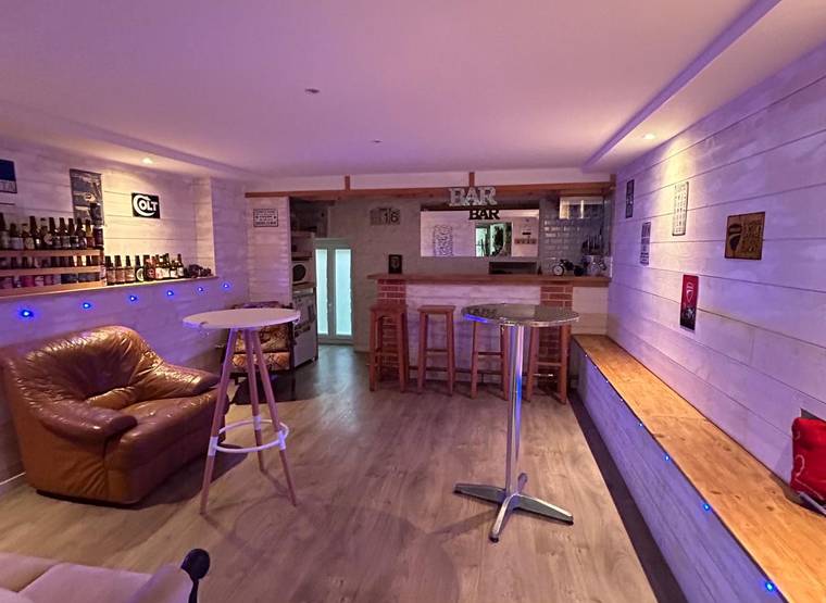 Maison de rue en duplex de 85m2 avec garage et bar aménagé.