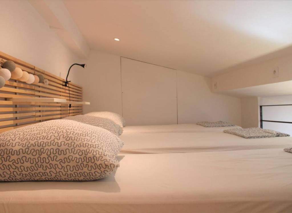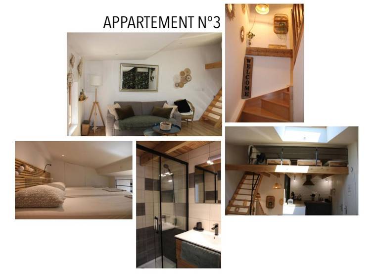 - Un duplex pour 5 personnes, comprenant un petit dortoir de 3 lits 1 personne en mezzanine et un canapé lit de grand confort pour 2 personnes dans le séjour (idéal pour un couple avec deux ou 3 enfants) 3e étage.