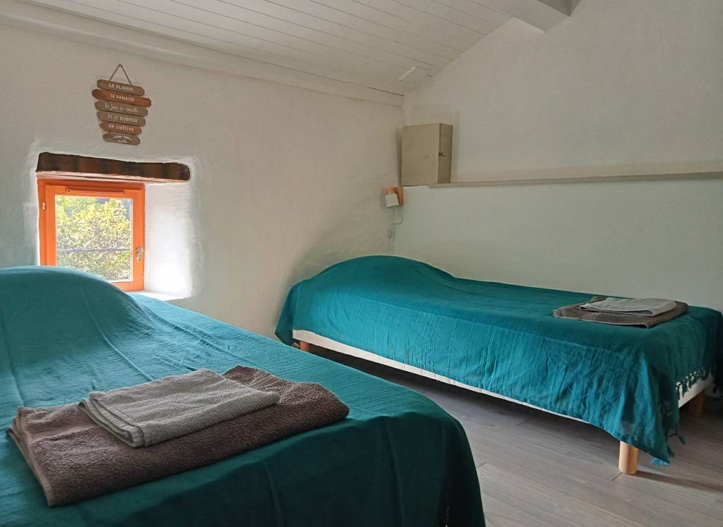 Le logement est climatisé, entièrement rénové et accueillant de 1 à 4 personnes à la nuitée ou plus. Vous y trouverez 1 chambre avec un lit double, 1 séjour avec 2 lits simples, 1 kitchenette et une salle de bain comprenant WC et Douche. Le linge de lit et de toilette sont fournis. Sont également à votre disposition réfrigérateur, bouilloire, cafetière, grille-pain, mini-four et plaque de cuisson ainsi que les ustensiles de cuisine. Divers produits Extra-locaux sont proposés tél que du miel, confitures, saucisson et fromages ou bien encore des Jus, bières et vins.