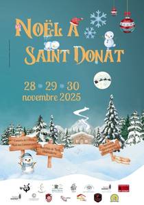 La magie de Noël opère à Saint Donat ! Du 28 au 30 novembre 2025 profitez d'un joli marché artisanal avec plein d'idées cadeaux ! Tout un univers s'offre à vous : des rendez-vous musicaux, le village des lutins, la rencontre du père Noël, l'illumination du sapin sans oublier les gourmandises de Noël et pleins d'autres suprises !