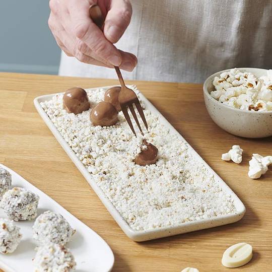 Plongez dans un atelier chocolaté inédit et réaliserez de délicieuses truffes au bon goût de pop corn, enrobées de savoureux éclats croustillants.