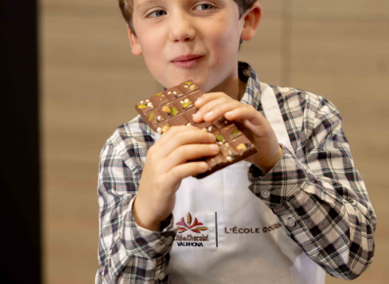 Dompel je gedurende 30 minuten onder in de fascinerende wereld van chocolade en maak je eigen gepersonaliseerde reep door ingrediënten naar keuze toe te voegen: krokante pistachenoten, krokante parels, geroosterde amandelen en andere lekkernijen.